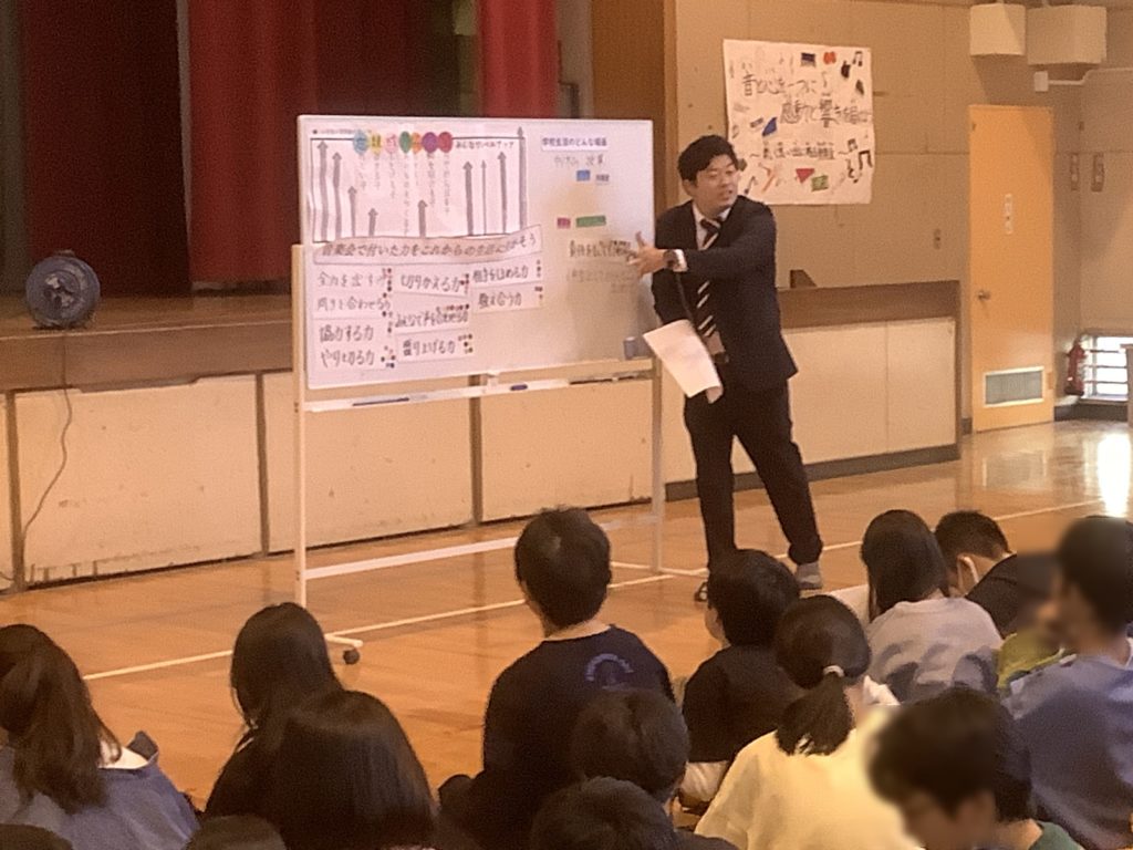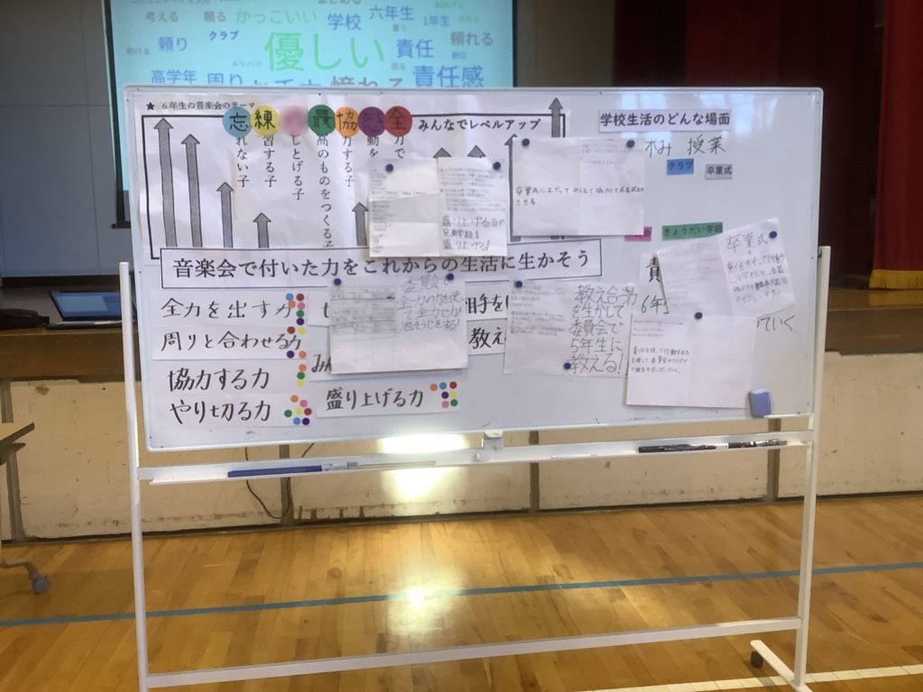令和7年12月4日(木)、練馬区立北原小学校で学校行事部の2回目の研究授業が行われました。音楽会の事後指導を学級活動(3)で行いました。音楽会を振り返るスライドとBGMで始まった授業は、音楽会を通して自分が身に付けた力を意欲的に見付け、さらにその力をどのように学校生活に活かせるか主体的に意思決定する姿が見られました。